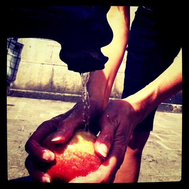 There was a small fruit market that we stumbled upon as we began our day and we purchased apples and strawberries, washing them in one of the city’s water spouts. Risky, for sure.