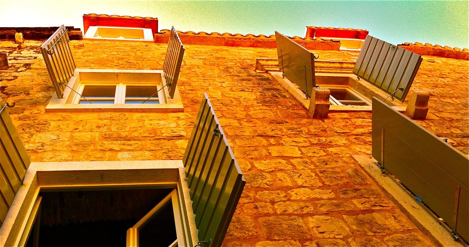 Soon after we woke, there were banging and crashing noises in the old town. It was the sound of “Bura”, the name given to a cold wind that can blow in this region of Croatia. It comes from the inland continent and blows out to the open sea. In our case, it was slamming windows and hinged shutters like the exclamation point to an argument. This change was a surprise to us as the previous three days had been perfect weather with highs in the 80s and lows in the 60s.